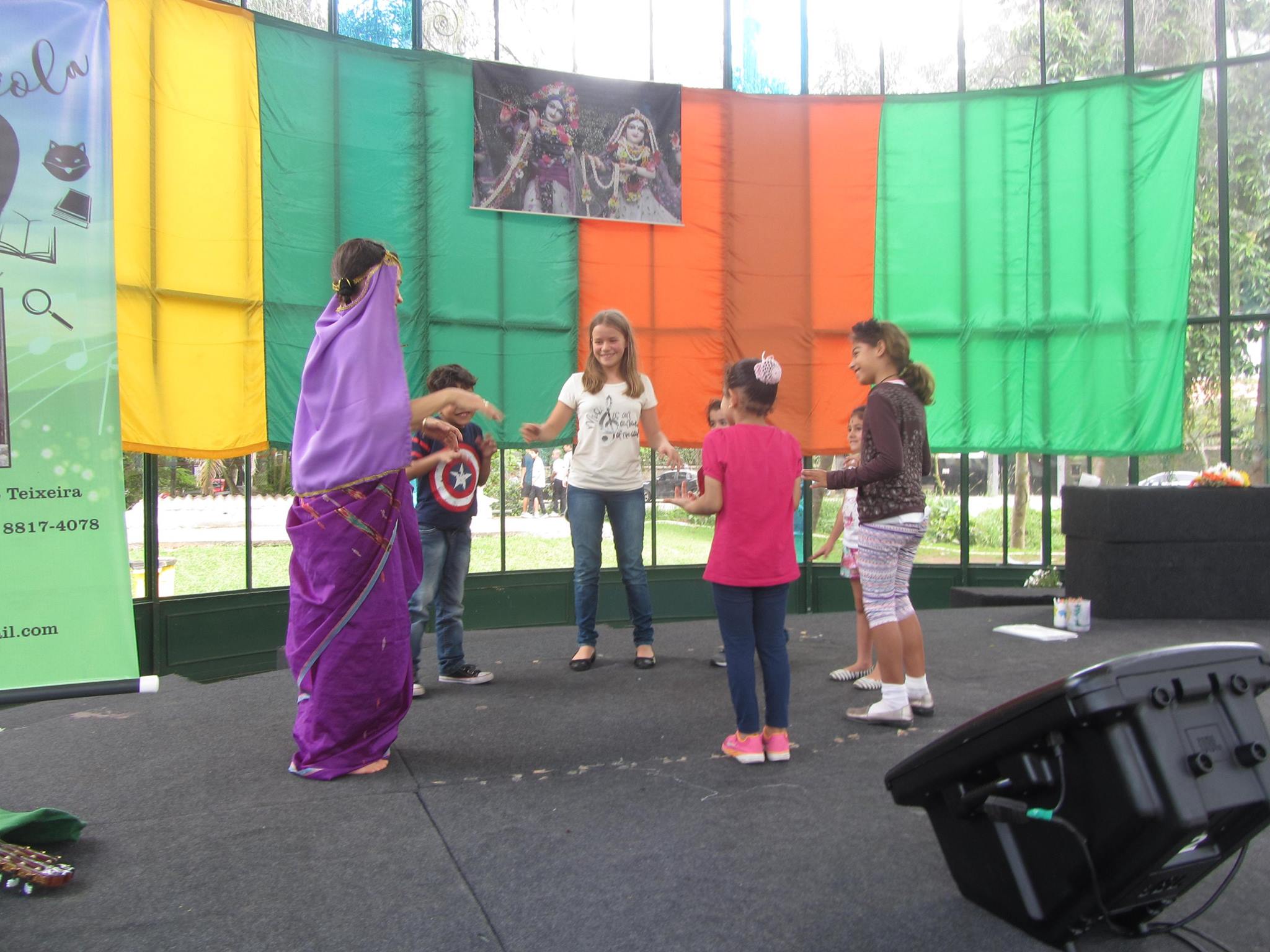 Este ano a Festa da Índia teve, pela primeira vez, em sua programação, a participação da contadora de histórias Valéria Wanderley, que animou a garotada com contos tradicionais indianos, além de desenho, dança e brincadeiras.